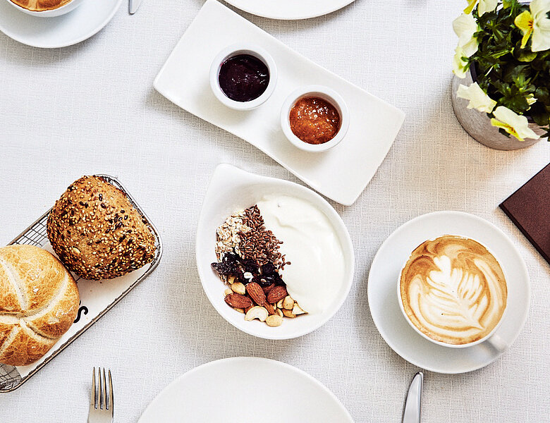 HUBER's Boutiquehotel continental breakfast impresses with a fresh food section featuring regional delicacies such as cheese, ham and sausage meats, as well as egg dishes prepared freshly to order. Delicious waffles and crepes are also not to be missed.