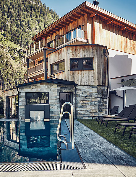 Erkunden Sie mit der Zillertal Activcard die Einzigartigkeit der Zillertaler Bergwelt und kühlen sich danach im Außenpool ab und entspannen Sie sich im HUBER's Green SPA.
