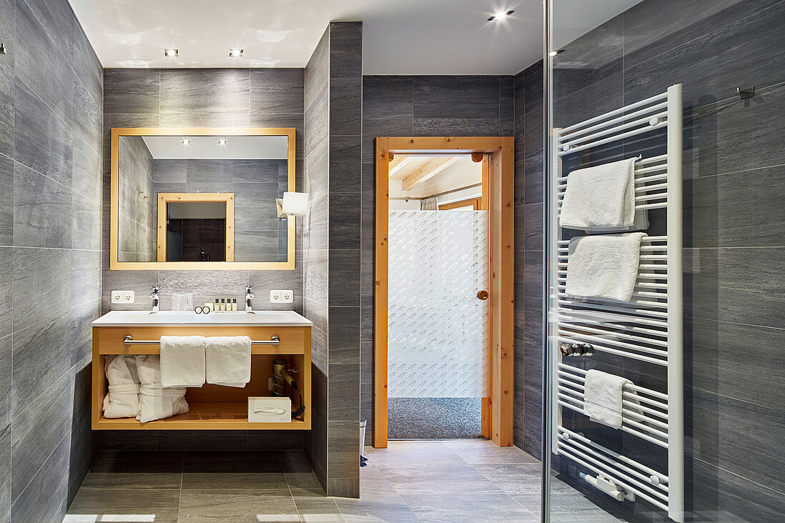 Neben dem geräumigen Doppelzimmer mit Wohnbereich steht ein separates Einzelzimmer zur Verfügung. In allen Räumen bilden duftendes Zirbenholz, weicher Samt in edlen Farben und hochwertiges Interior eine Symbiose aus Moderne und Nachhaltigkeit. Jede individuell und einzigartig!